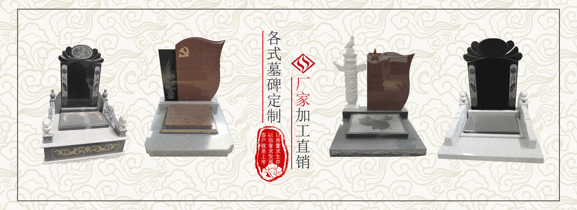 公司擁有大切8臺(tái)、切機(jī)4臺(tái)、紅外線(xiàn)切機(jī)1臺(tái),磨機(jī)20臺(tái),生產(chǎn)加工各種國(guó)內(nèi)外墓碑,雕刻,建筑工程異形加工等。 其中公司的主導(dǎo)產(chǎn)品為國(guó)內(nèi)外墓碑(國(guó)內(nèi)各式傳統(tǒng)、藝術(shù)型墓碑、歐美墓碑)、園林廣場(chǎng)、雕刻系列產(chǎn)品、 石制骨灰盒系列、石茶盤(pán)、寺廟建筑及異形系列。